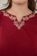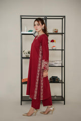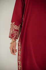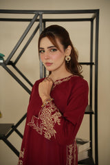 Step into effortless elegance with this beautiful 2-piece dress in a rich maroon color. Designed for a graceful and modern look, this outfit features delicate embroidery that enhances its overall sophistication.