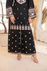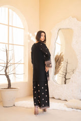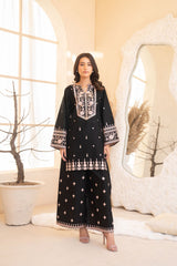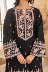 Channel timeless sophistication with our Noir Elegance 2-piece. Crafted from high-quality khaddar fabric, this elegant black outfit features exquisite embroidery in soft contrasting tones, adding depth and grace to your winter wardrobe.