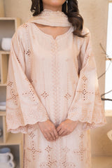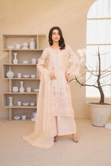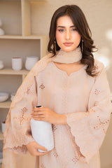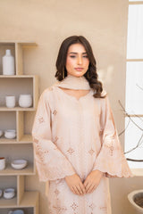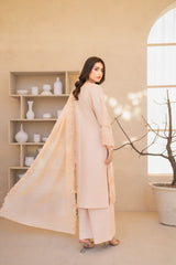 Grace meets timeless sophistication in this exquisitely crafted embroidered khadar outfit, designed for the woman who embodies elegance in every season. The soft pastel hue radiates warmth and serenity, while the intricate embroidery weaves a story of delicate craftsmanship.