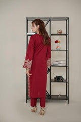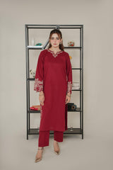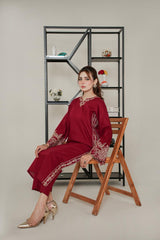 Step into effortless elegance with this beautiful 2-piece dress in a rich maroon color. Designed for a graceful and modern look, this outfit features delicate embroidery that enhances its overall sophistication.